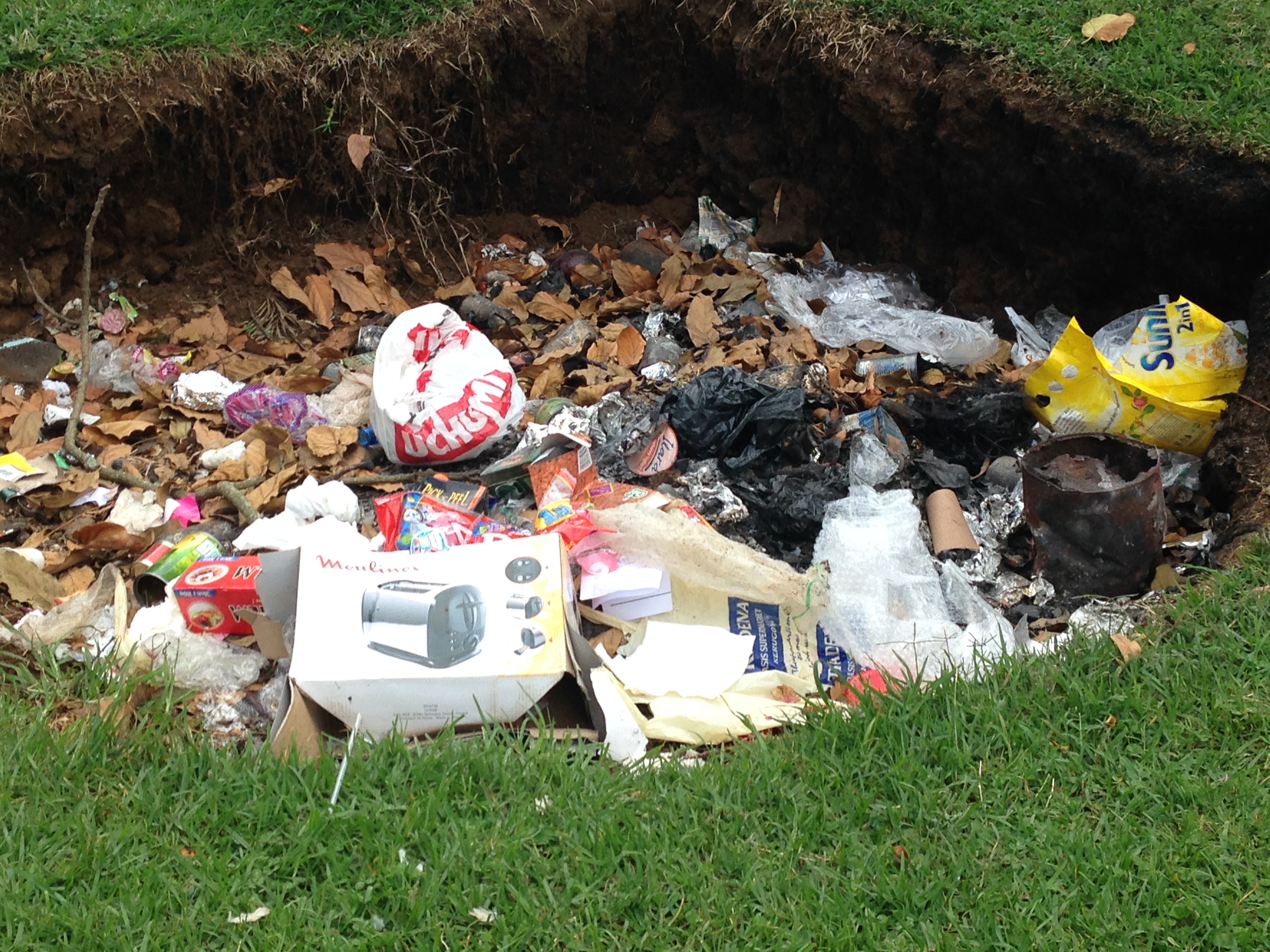 Dad, Sue, and many people at the hospital burn their garbage. We also saw several burn piles along the roads in Nairobi or elsewhere. While visiting Dad and Sue’s home, we put compost in one can; washed and reused water bottles and glass soda bottles in another; and everything else in another to be burned. One morning when I was wandering in their yard I discovered the compost hole as well as the burn hole.